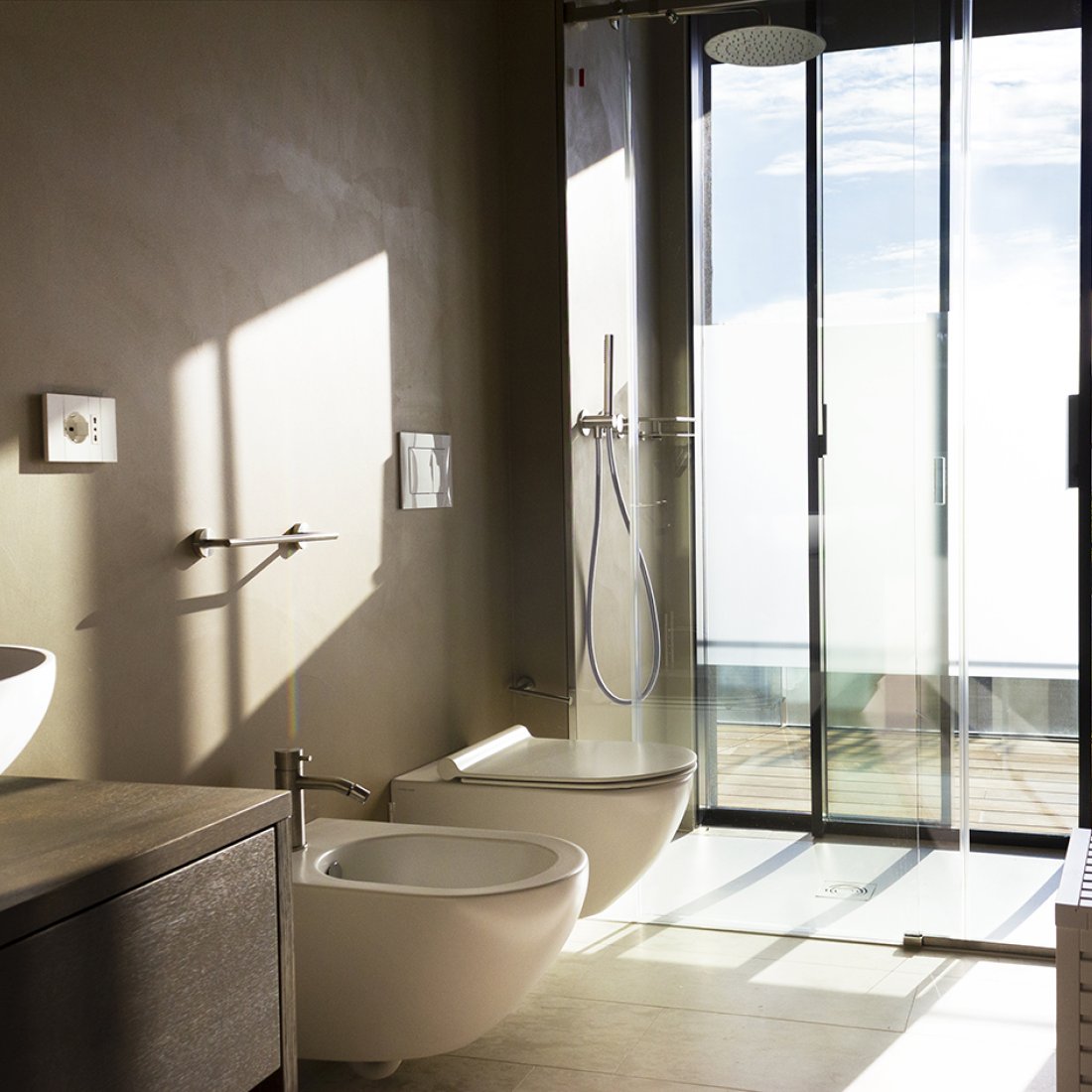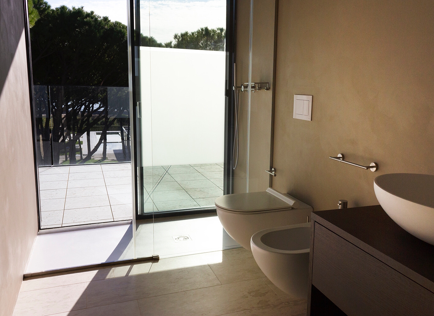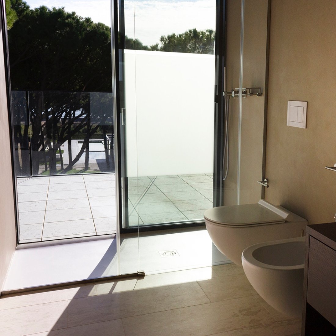 I due bagni privati dell'appartamento sono moderni e completamente attrezzati. Inoltre da entrambi si ha accesso diretto alla spaziosa terrazza privata dell'appartamento, vero gioiello di questa proprietà, poiché offre una vista panoramica sulla spiaggia e sul mare.
